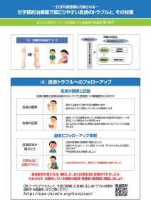 EGFR阻害薬に代表される、分子標的治療薬で起こりやすい皮膚のトラブルと、その対策のビデオを公開しました。 セルフケアの大切さなどが詳しく解説されていますので、ご参考になさってください。